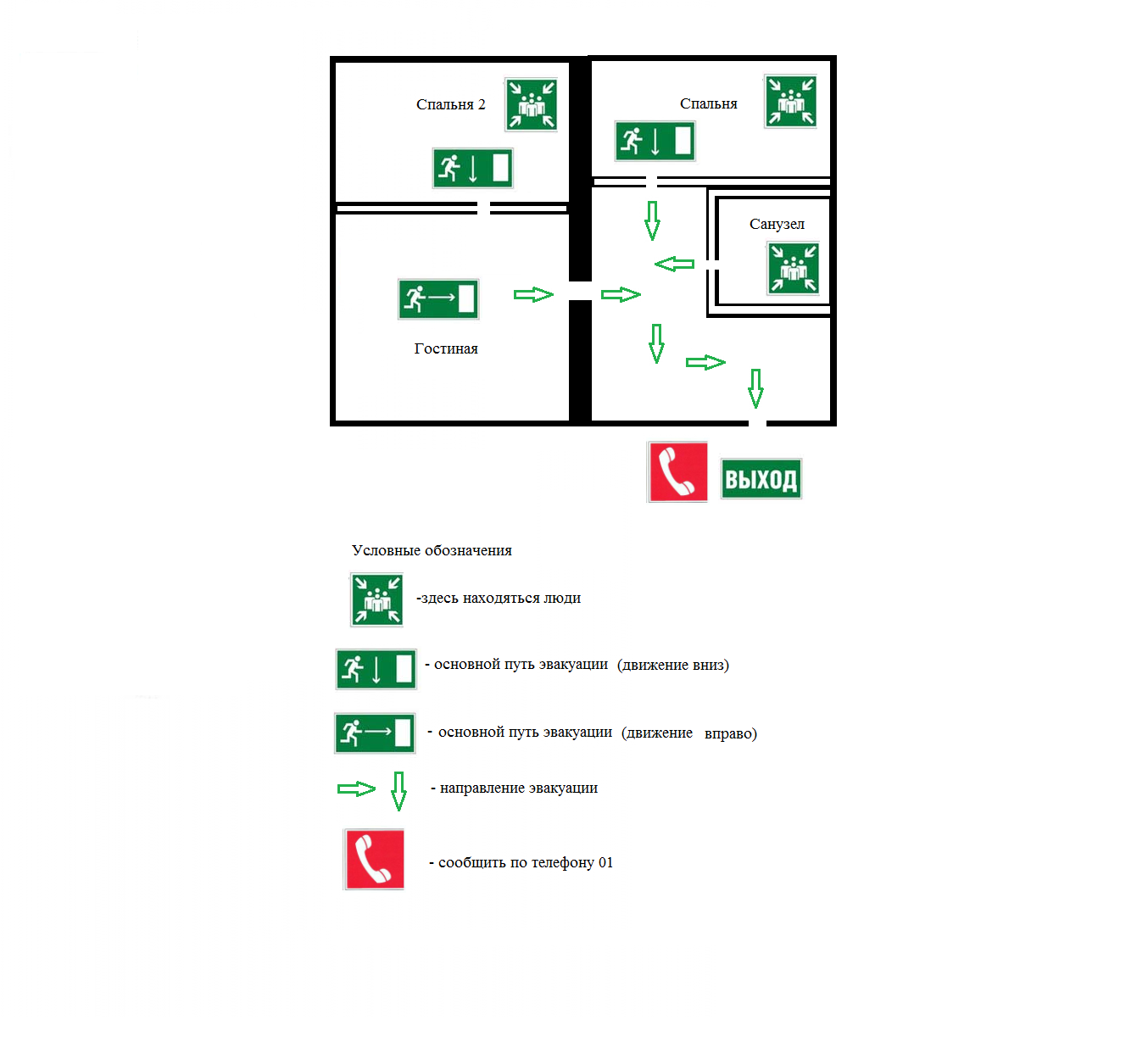 Используя навыки, полученные в результате изучения курса «Информационные технологии в профессиональной деятельности», и с помощью предложенных в нем графических редакторов нарисуйте план эвакуации из вашей квартиры (дома).