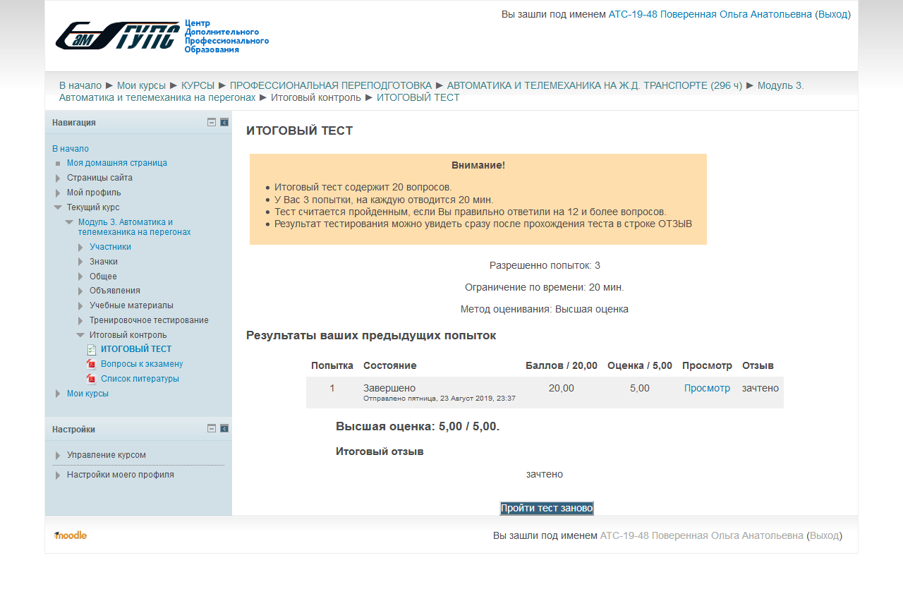 Итоговый тест по Автоматике и телемеханике на перегонах не подходит?