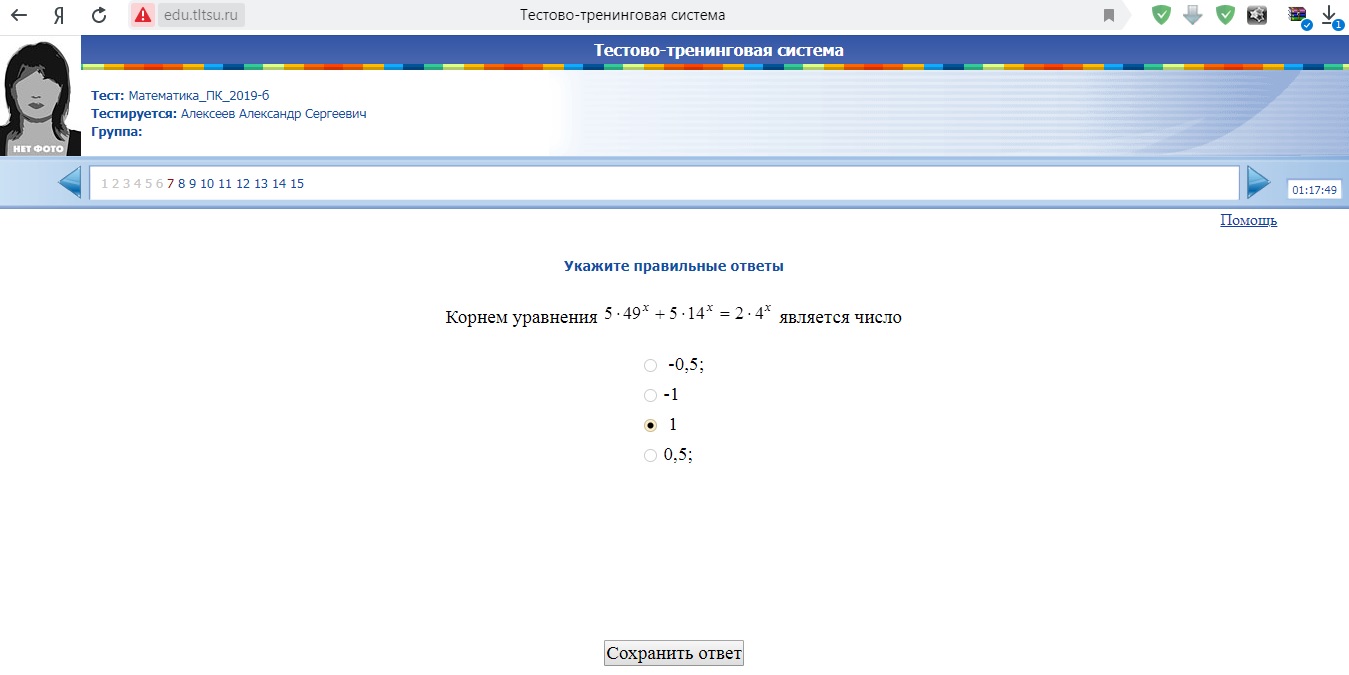 Вступительный тест по математике в Росдистант